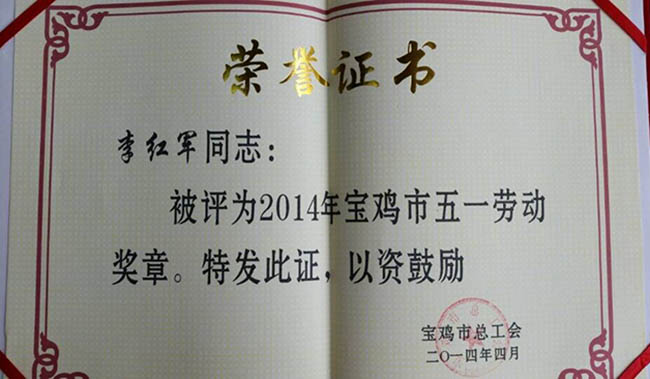 2014年集團董事長榮獲五一勞動獎章,在寶雞市工人文化宮外留影紀念! 集團公司李董事長被寶雞市總工會授予2014年度五一獎章獲得者,這是李總首次獲此殊榮。  ……